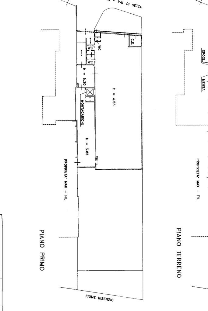 al piano seminterrato troviamo una ulteriore zona carrabile per carico e scarico merci dove è presente un montacarichi da 2200kg di portata, ampiezza 2.5m x 2.5m con altezza di 2.5m.